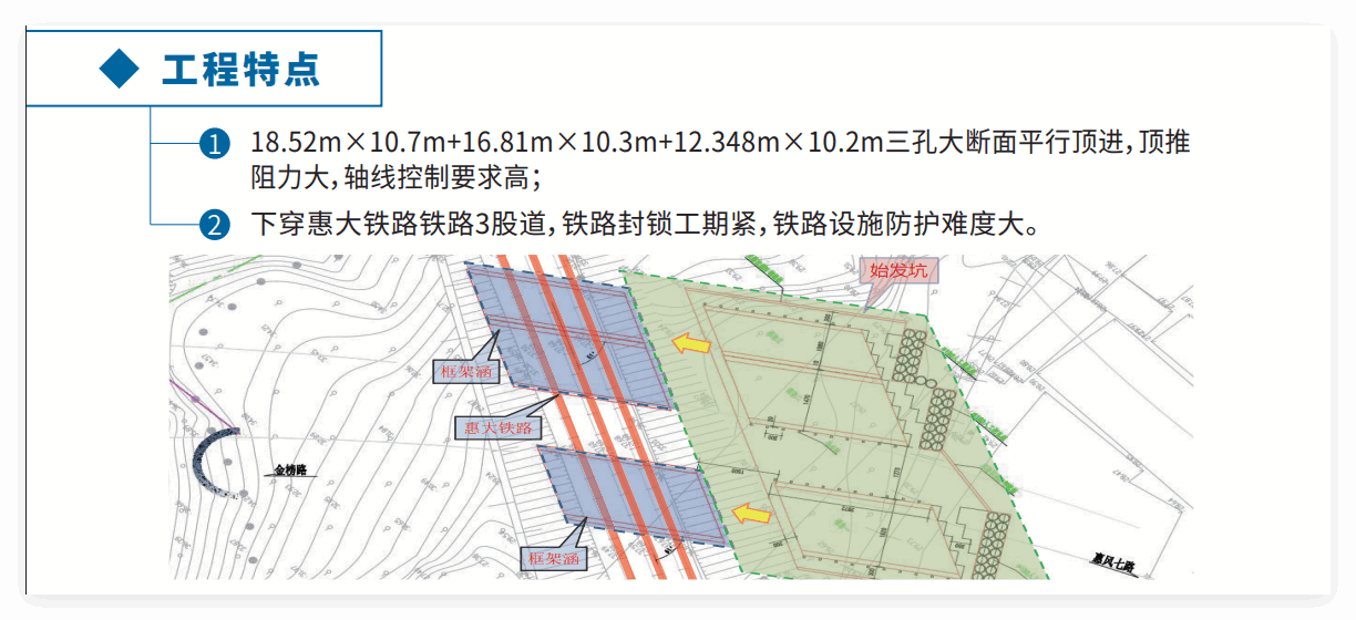 惠州新城金恺路下穿惠大铁路框架涵 (18.52m×10.7m+16.81m×10.3m+12.348m×10.2m)